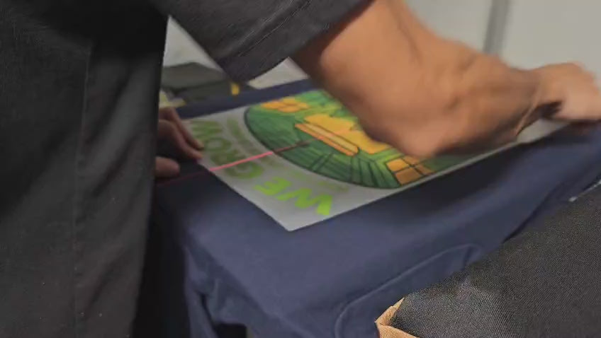 DTF prints full-color designs onto film, then heat-presses them to garments. It delivers vibrant detail on cotton, polyester, and blends—no weeding or vinyl needed. Great for shirts, hoodies, hats, and more.